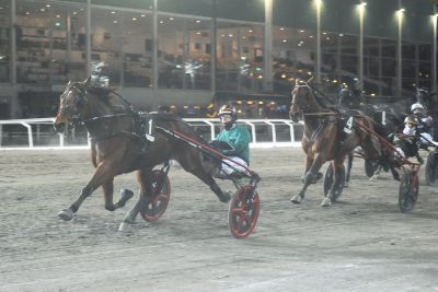 Johan Untersteiner fullbordade sin historiska travlördag genom att även leda STL Bronsdivisionen (V85-8, se bild) från start till mål med favoriten Eminent Kronos.